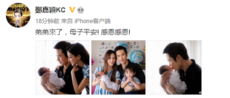 網易娛樂8月3日報道 8月3日,鄭嘉穎在社交平臺曬照宣布老婆陳凱琳二胎生子的喜訊,他寫道:“弟弟來了,母子平安!感恩感恩!”曬出的照片中,鄭嘉穎雙手抱著寶寶,老婆陳凱琳靠在他的肩膀上,而另一張全家福上,一家四口同框,十分幸福。