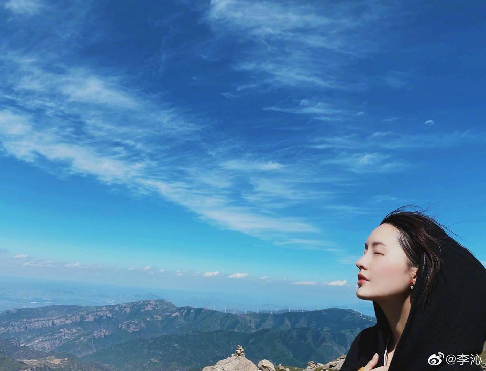 3日晚,李沁分享一組美照,照片中,她素顏出鏡,穿著一件黑色長外套,站在山頂上藍天白云下,感受大自然和微風,愜意美好。