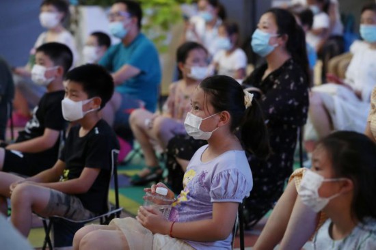坐著小馬扎,巨大的電風(fēng)扇吹來(lái)絲絲涼意。大屏幕上播放著《我們的動(dòng)物鄰居》。有人抱著孩子,有人頭發(fā)花白,大家保持著社交距離,聚精會(huì)神盯著屏幕,在2020年的這個(gè)夏夜,仿佛穿越回了小時(shí)候搖著蒲扇在家門(mén)口看露天電影的時(shí)光。
