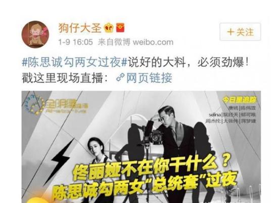 佟麗婭和陳思誠因為《北京愛情故事》結緣,在結婚后佟麗婭已經誕下一子。但是,2017年初,陳思誠被拍到在酒店夜會兩女,鬧出出軌丑聞,引發熱議。