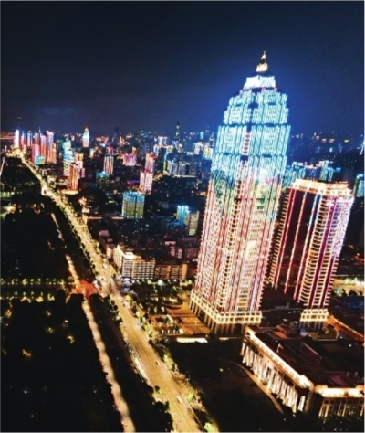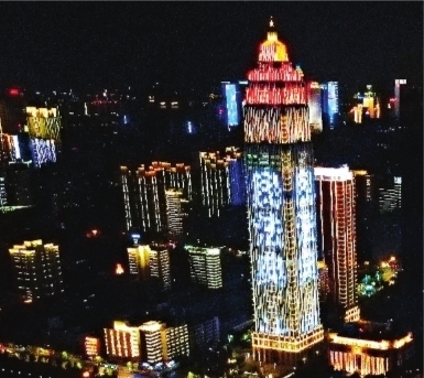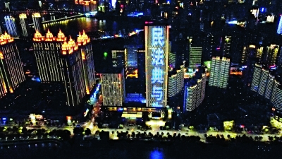 8月10日晚,“民法典—一點亮城市地標”大型燈光秀在江邊上演。