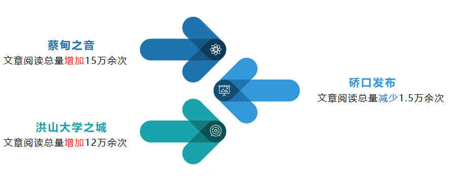 從內(nèi)容傳播力分析來看,7月僅“硚口發(fā)布”“江夏發(fā)布”文章累計閱讀總量較6月有所減少,其中“硚口發(fā)布”文章閱讀總量較上期減少了1.5萬余次,其他地區(qū)的微信公眾號文章閱讀總量均出現(xiàn)增加。其中,增量最大的為“蔡甸之音”,文章閱讀總量較6月增加了15萬余次,內(nèi)容傳播力得到較大增強(qiáng)。此外,“洪山大學(xué)之城”文章閱讀量也增加了12萬余次。