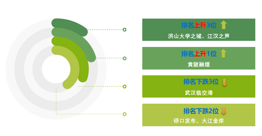 7月,公眾號整體排名與上期相比有較大進(jìn)步的公眾號有:“洪山大學(xué)之城”、“江漢之聲”排名上升3位,“黃陂融媒”上升1位;7月排名下跌的公眾號有:“武漢臨空港”排名下跌3位,“硚口發(fā)布”、“大江金岸”下跌2位,“美麗青山”、“蔡甸之音”、“大成武昌”、“新洲發(fā)布”下跌1位。“武漢開發(fā)區(qū)”和“江夏發(fā)布”排名未出現(xiàn)變化。