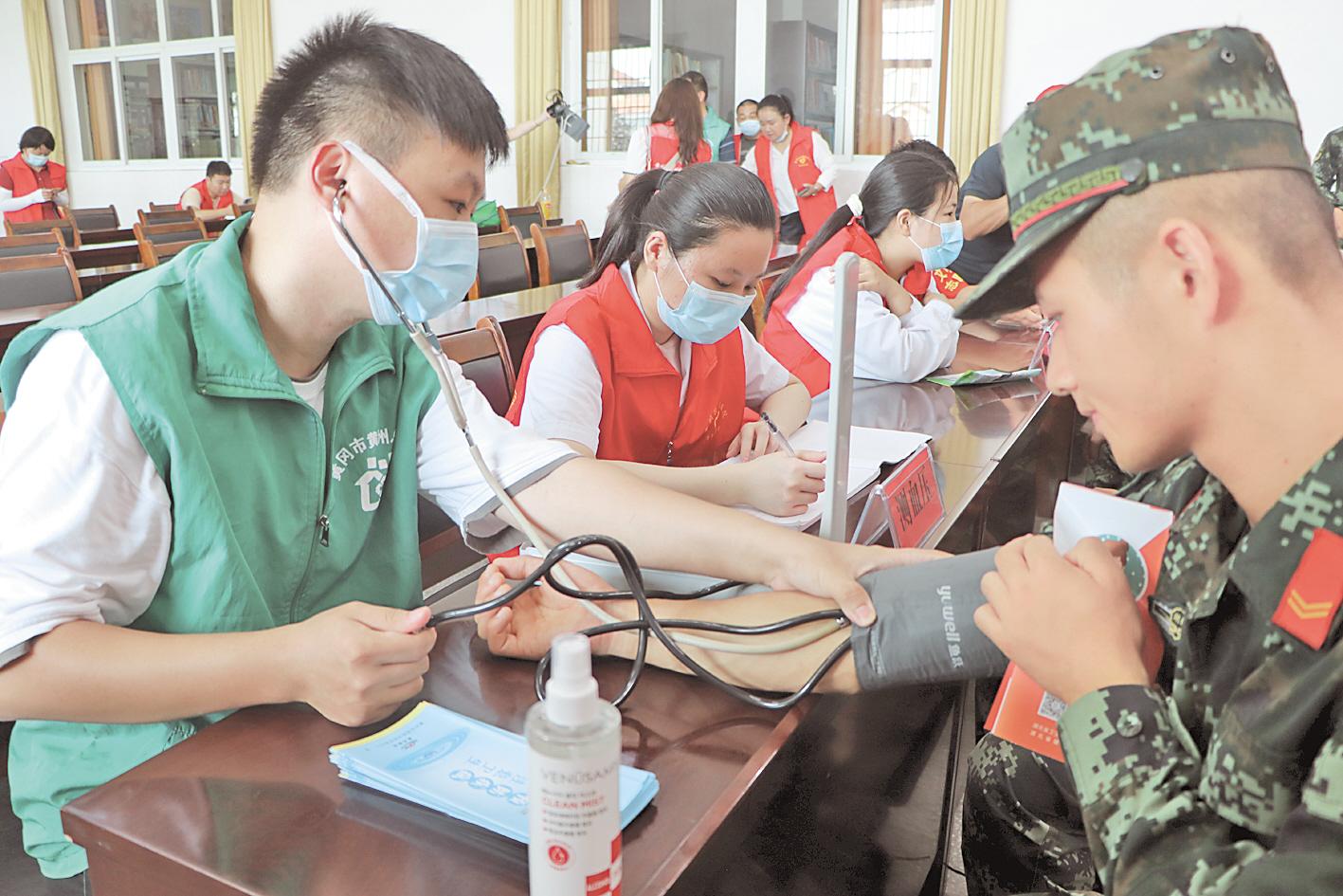 醫療志愿服務隊為防汛人員做體檢。 (資料圖片 黃州區新時代文明實踐中心提供)