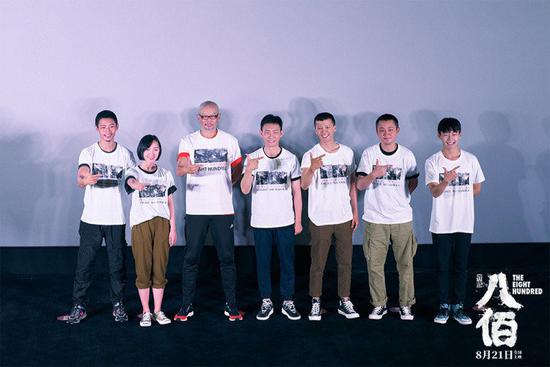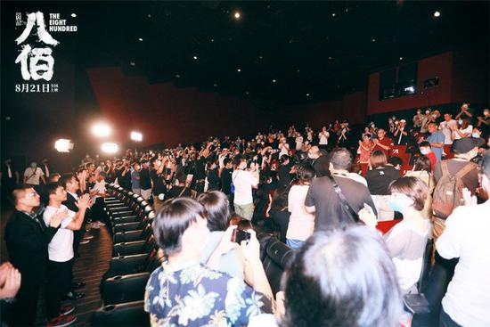 當日觀影結束后,全場觀眾響起了自發而持久的掌聲,也令影片主創感慨萬分。身在丹東的張譯表示:“感謝這個偉大的時代,感謝我們能夠生長在這樣一個偉大的國家。感謝這么多觀眾來看我們這部誠心誠意的作品,非常想念《八佰》在一起奮斗的日日夜夜,無論相隔多遠,我們的心永遠在一起。”在首次觀影后,歐豪表示:“頭一回看自己演的電影看哭了。謝謝,值得!”魏晨也特別感謝導演:“很多次做夢還在拍《八佰》,謝謝虎哥,很開心跟《八佰》的團隊一起做了這樣一個夢。”