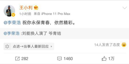 隨后,原“劉能”扮演者王小利評論道:“祝你永葆青春,依然精彩。”十分搞笑。