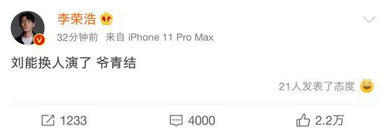 在《鄉村愛情》中,王小利飾演的劉能一角深入人心,在他不能參演的消息傳出之后,網友們紛紛大呼可惜。該劇的忠實粉絲李榮浩還感嘆發文:“劉能換人演了,爺青結”。
