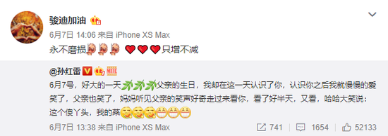 而早前在6月的時候,孫紅雷也曾發文回憶和妻子的初識,吐露心聲:“這個傻丫頭,我的菜”,天天膩膩。