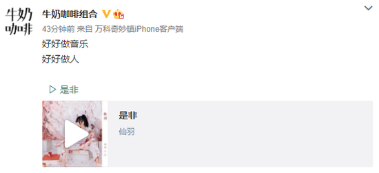 不久前,牛奶咖啡組合指出何洛洛新歌《舒克貝塔2020》抄襲《明天,你好》,稱:“《舒克貝塔》是很喜歡的國產原創動漫,請不要愧對‘原創’二字”,并要求平臺下架該抄襲歌曲。據悉,該歌曲的作曲者、制作人是劉佳,其代表作有《青春修煉手冊》《寵愛》《大夢想家》等。隨后,牛奶咖啡組合更是發文疑似斥責抄襲一事:“好好做音樂,好好做人?!?/p>