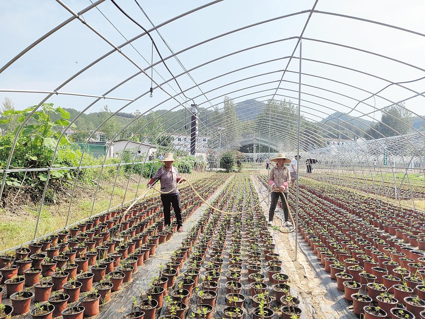 在湖北省麻城市黃土崗鎮伍家河易地扶貧搬遷安置點,搬遷群眾在田間澆水(8月5日攝)。(新華社發)