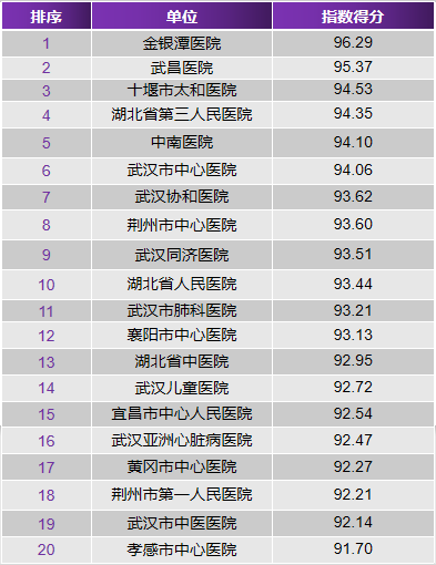?湖北醫院傳播指數榜T0P20詳情如下(數據統計時間:2020年8月1日至8月15日):