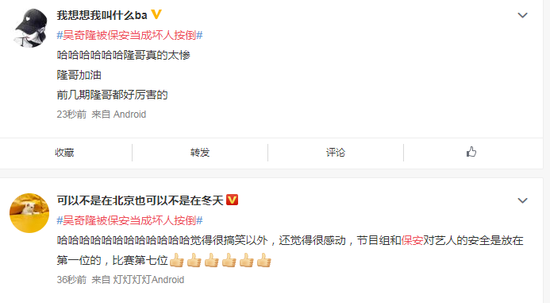 網友們紛紛表示自己被笑道了,一方面表示心疼吳奇隆,也不知這突如其來的心理陰影面積有多大,另一方面還不忘記為保安人員的敬業點贊。