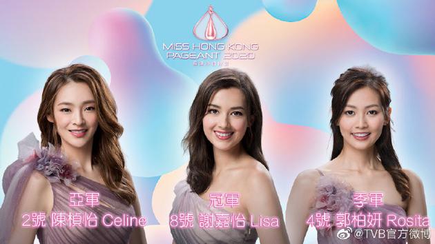 網易娛樂8月30日報道 據香港媒體報道,《2020香港小姐競選》決賽30日晚舉行,結果出爐:謝嘉怡勇奪冠軍,亞軍由陳楨怡奪得,郭柏妍則奪得季軍。