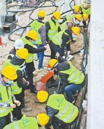 2月2日,山河集團突擊隊員在雷神山醫院工地現場。