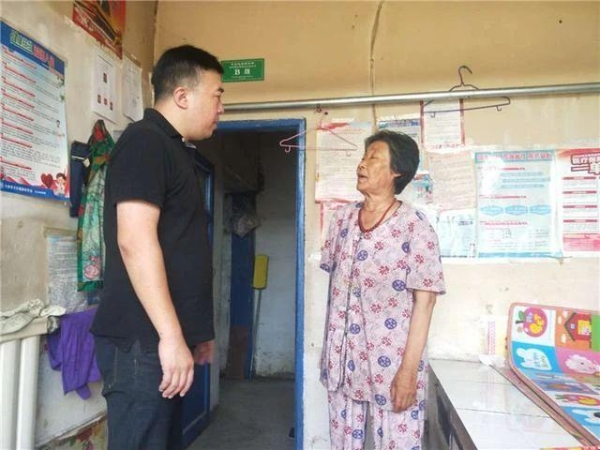 吉林省農安縣合隆鎮燒鍋嶺村第一書記祁志剛看望貧困戶谷鳳英