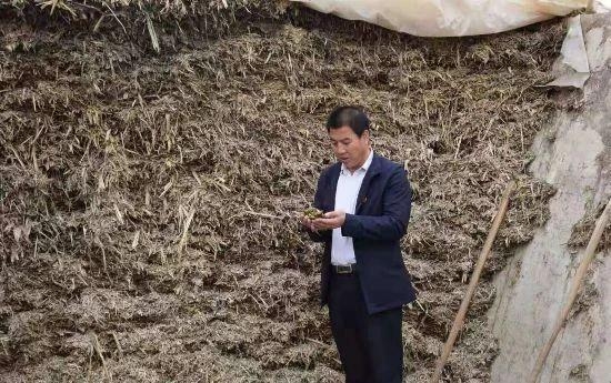 寧夏固原市西吉縣龐灣村第一書記高士平查看青貯池腌草情況