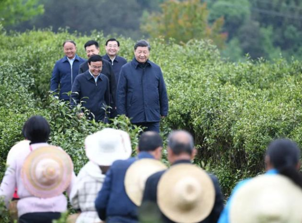 2020年4月21日,習近平來到陜西省安康市平利縣老縣鎮,在茶園考察脫貧攻堅情況。
