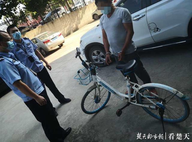 準備開車返回麻城老家的葉某,順手牽羊偷了一輛共享單車,沒想到深更半夜會遇到警察。