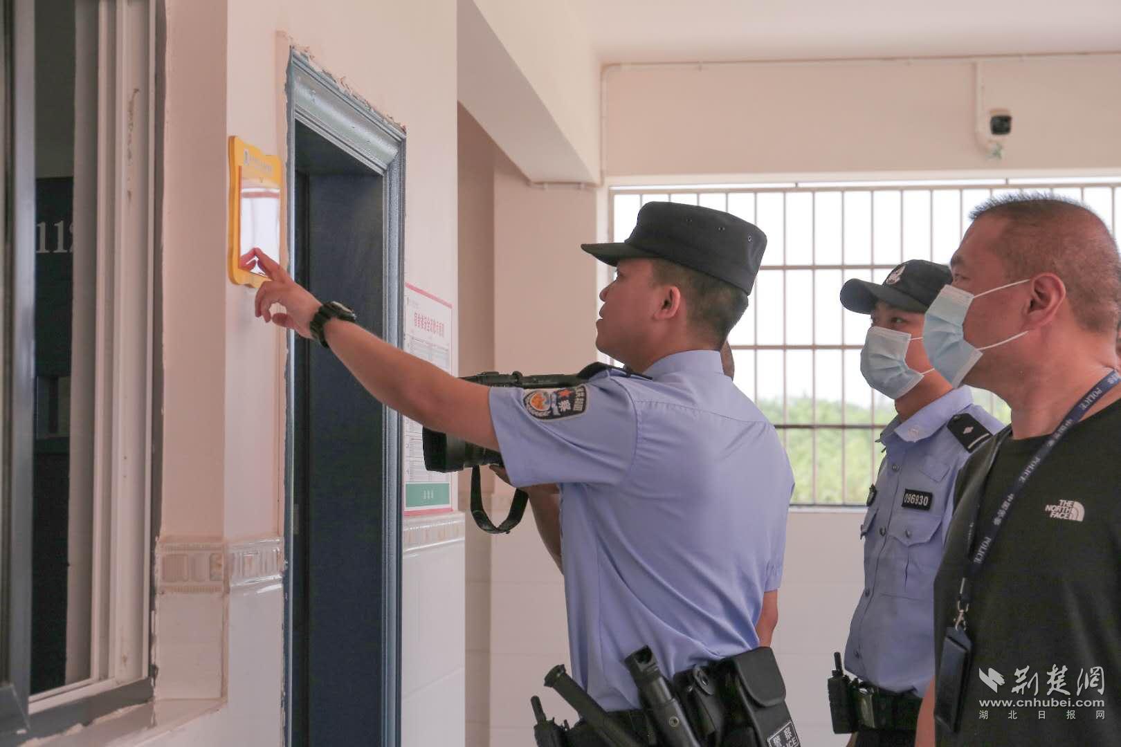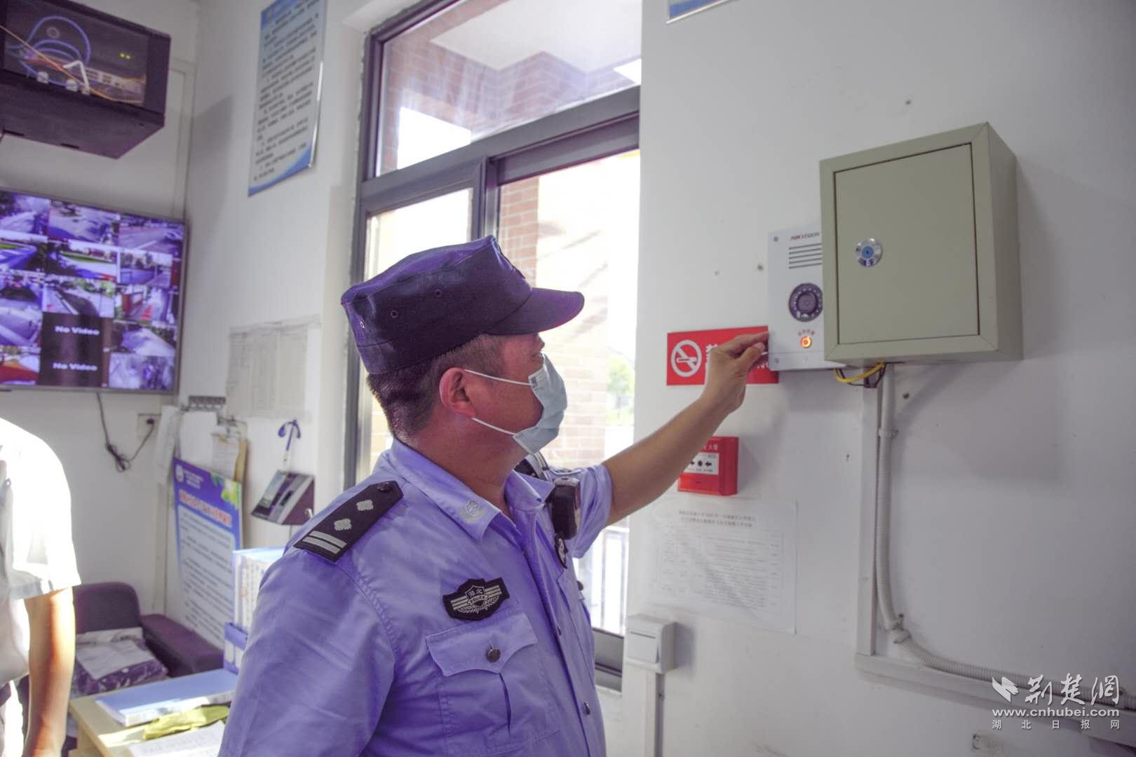 武漢市公安局黃陂區(qū)分局民警入校檢查,確保一鍵式報警器處于正常狀態(tài)。通訊員供圖