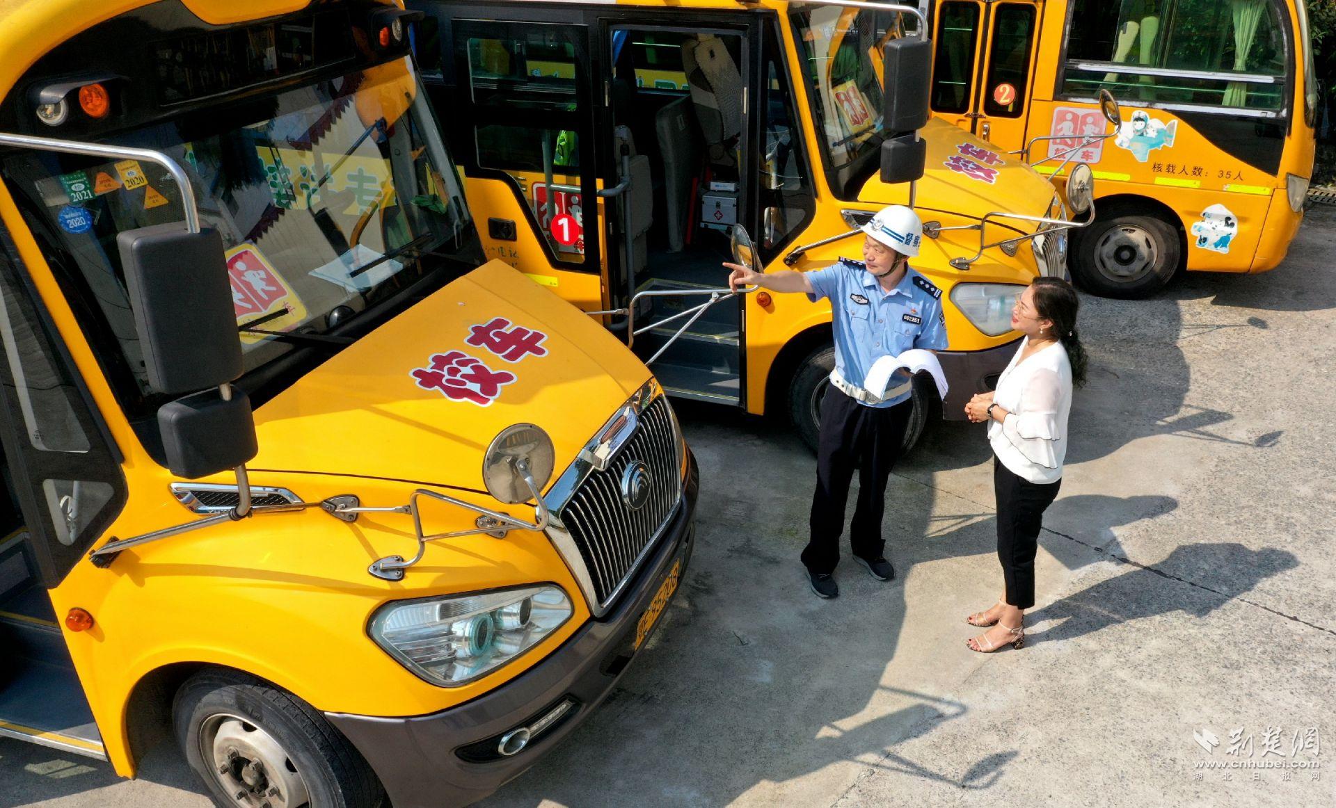 8月28日,宜昌市秭歸縣茅坪鎮(zhèn)九里幼兒園,督察民警檢查校車問題整改情況。通訊員供圖