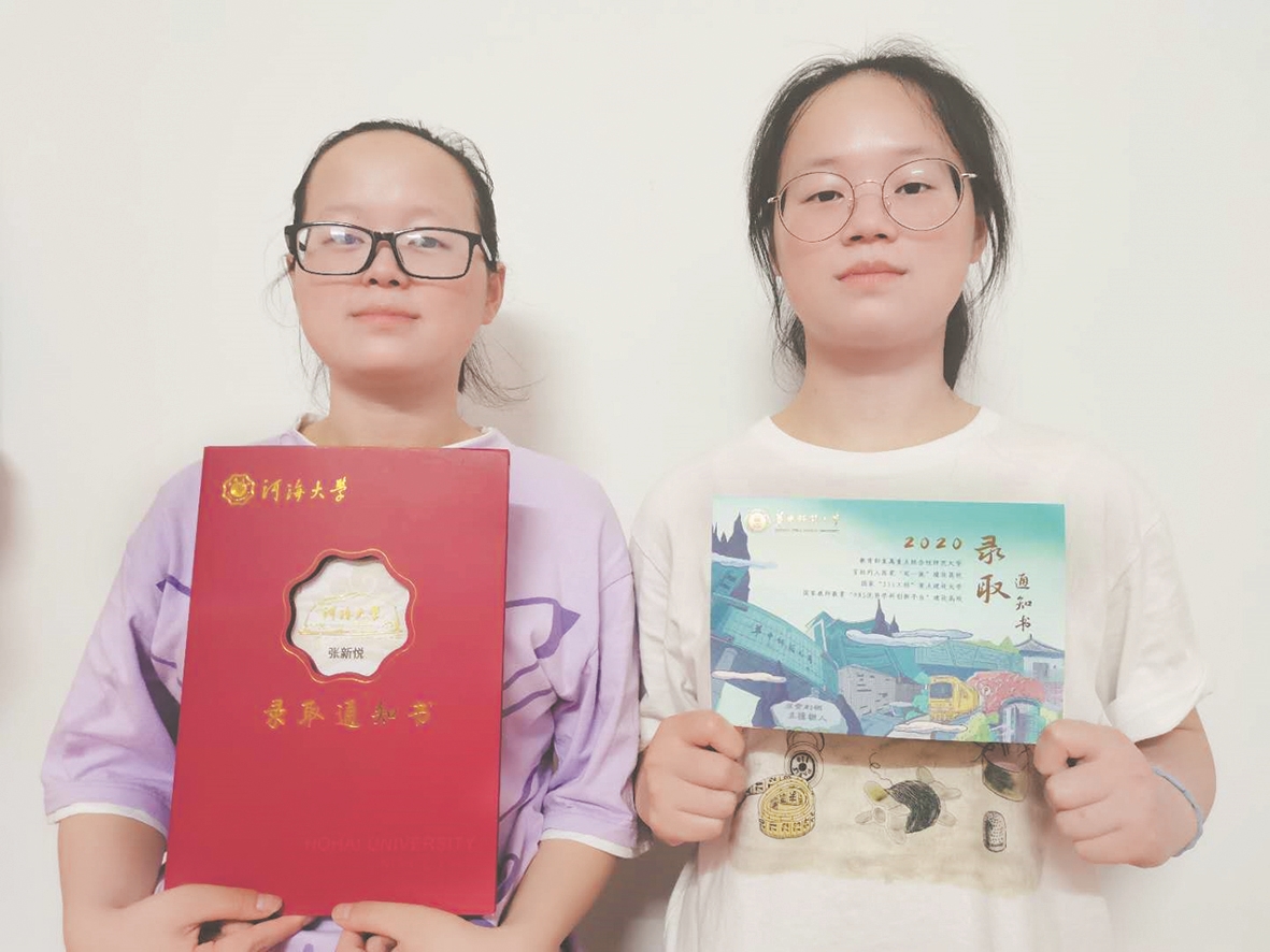 雙胞胎姐妹收到錄取通知書(左邊張新悅 右邊張歡歡)