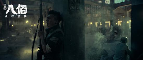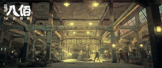 在電影《八佰》中,多數戰斗都以四行倉庫為陣地,隔著厚厚的墻壁遠程射擊,而其中一場敵軍夜襲倉庫的戲,是全片的一次零距離“爆發性”戰斗。危機當前,生死置之度外,敵我雙方上百人于倉庫內面對面無遮擋槍戰交火,軍人的血性與戰爭的慘烈震撼了觀眾,甚至連演員白恩都直言:“(這樣的場面)從沒遇到過!”