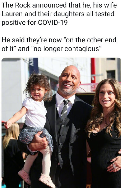 網易娛樂9月3日報道 據外媒報道,美國男演員巨石強森在社交媒體發文,稱自己的新冠病毒檢測結果呈陽性,妻女也“中標”。
