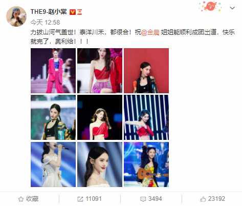 網易娛樂9月3日報道 9月3日,THE9趙小棠曬出金晨九宮格美圖,配文:“力拔山河氣蓋世!泰洋川禾,都很合!祝金晨姐姐能順利成團出道,快樂就完了,奧利給”,孔雪兒也手動為金晨噴好運噴霧:“好運都要送給會劈叉、會下腰、會挑眉、會空翻的超美金晨姐姐,祝姐姐順利成團出道”