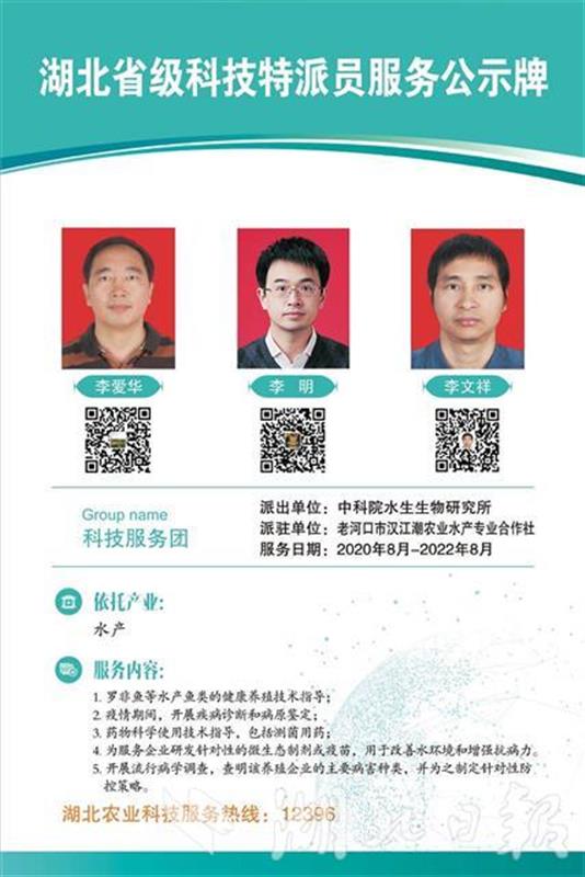 活動(dòng)中,省科技廳農(nóng)村處、中科院水生所科研處負(fù)責(zé)人為專家們頒發(fā)了省級(jí)科技特派員聘書(shū)。新聘省級(jí)科技特派員正式掛牌上崗,現(xiàn)場(chǎng)就與3家企業(yè)代表簽署了服務(wù)協(xié)議,進(jìn)行了最新水產(chǎn)技術(shù)和成果路演,當(dāng)面回答了多家企業(yè)咨詢。