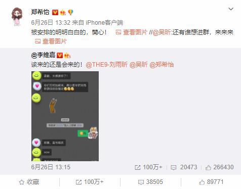 此前,鄭希怡多次表達喜歡劉雨昕,還曾喊話:“劉雨昕,我很喜歡你,你為什么不回復我私信,我要取關你了。”隨后還是李維嘉為她們拉了群,才讓鄭希怡和劉雨昕順利搭上線。