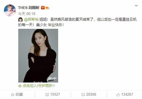 網易娛樂9月5日報道 9月4日晚,《乘風破浪的姐姐》成團之夜直播,成團名單出爐!寧靜、萬茜、孟佳、李斯丹妮、張雨綺、郁可唯、黃齡成團。凌晨,THE9劉雨昕發文祝鄭希怡畢業快樂:“雖然乘風破浪的夏天結束了,但以后也一定是直掛云帆的每一天!美少女 畢業快樂! ”