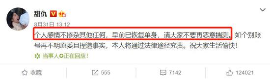 而甜仇在社交網站上發文表示個人感情不摻雜其他任何,早前已恢復單身,對于個別賬號再不明原委且捏造事實,將通過法律途徑究責,也是很剛了。而王思聰并沒有理甜仇的發文,很快身邊就出現了這位新美女,看起來已經從上一段感情中走出來了,如今他更是疑似大手筆為新歡買房,可見兩人的感情穩定升溫。