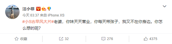 話雖如此,但最后小S還是為汪小菲說好話,她認為姐夫發文的用意應該是想鼓勵大S,因為大S現在毫無事業心,不要說事業野心,她連最基本的生活都圍繞著子女,已經到了沒有自我的地步。