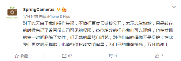 隨后,店家再次發文,為不慎將鏈接公開的行為道歉,并強調粉絲應文明追星。