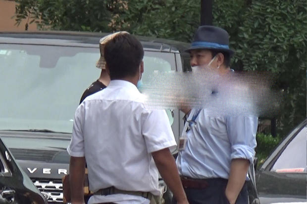經過一番溝通,張鐵林還是返回停車處,但只見他雙手叉腰,仔細看了座駕四周,依舊沒有將車停到別處,見張鐵林二人仍舊將車停留在原地,保安連連擺手示意,雙方再次進行溝通。