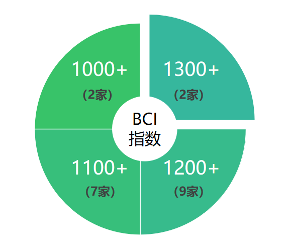 從BCI指數來看,整體數值較上月有小幅下滑,入榜的微博號指數均超過了1000,但僅有2家指數超過1300,分別是@武漢發布、@武漢消防;大多數微博號BCI指數集中在1100至1300區間,共計16家,占比達到80%。