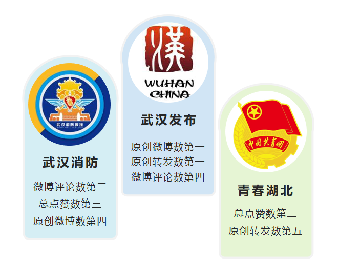 8月BCI指數排名,@武漢發布 原創微博數、原創轉發數均排名第一,助力其蟬聯榜首;@武漢消防 保持上升勢頭,名次再升1位,本期排名第二;@青春湖北 從上期第五名上升至本期第三名;上期榜單亞軍@湖北天氣 本期排名下滑至第7名;@湖北省文化和旅游廳 從上期百余名躍升至本期第十一名,成為最大黑馬。