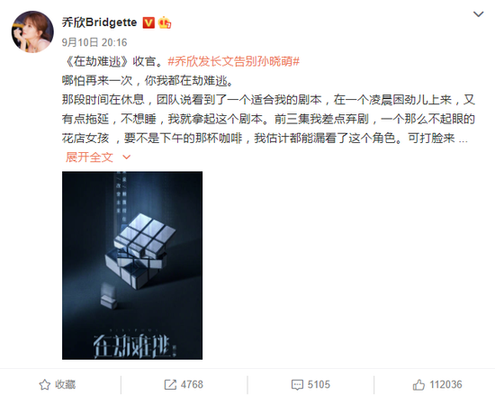 網(wǎng)易娛樂9月11日報(bào)道 9月10日,《在劫難逃》第一季收官,喬欣發(fā)長文告別自己飾演的角色孫曉萌。她直言“孫曉萌是我出道以來,看到過最心動的角色 ,沒有之一。”并表示自己和同組演員學(xué)到了很多。文中她回憶了拍劉曉萌捅劉雨奇的戲份,感謝張皓然給自己的刺激,并稱贊鹿晗的演技,“小鹿真的很棒,嘿嘿,你演得彬彬,讓這場曉萌的角色動機(jī)一點(diǎn)都不難解。”正文最后喬欣也透露了《在劫難逃》第二季的拍攝計(jì)劃。