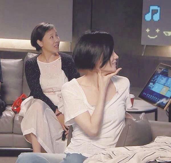或許是因為身處自己熟悉的K歌環境里,王菲當晚穿著白色T恤和淺色牛仔褲就來了,簡單干凈中反而透出“四兩撥千斤”的自信。從直播鏡頭來看,已經51歲的王菲面色紅潤,皮膚緊致,喜形于色,狀態極佳,演唱時偶爾蜷縮在沙發里,輕松愜意如同在家。值得一提的是,她帶來了3位好友擔任和聲,其中一位是她的長期合作伙伴、著名搖滾歌手竇唯的妹妹竇穎。