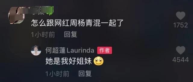不過,留言里也出現了不和諧的聲音,先是有人不客氣地問何超蓮:“怎么跟網紅周揚青混在一起”,何超蓮直接回答“她是我的好姐妹”,被贊夠仗義。