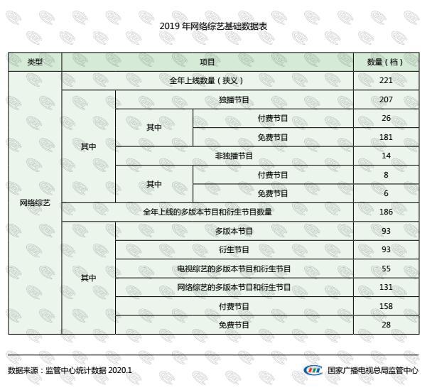 2020年8月,國家廣播電視總局監(jiān)管中心推出《2019網(wǎng)絡(luò)原創(chuàng)節(jié)目發(fā)展分析報(bào)告》。報(bào)告顯示,2019年新上線網(wǎng)絡(luò)綜藝節(jié)目221檔,圍繞熱門綜藝制作的衍生節(jié)目達(dá)到186檔,比2018年的116檔有明顯增長。