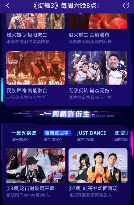 發(fā)展到今天,衍生節(jié)目的數(shù)量早已不止一檔,比如正在熱播的《明日之子樂團(tuán)季》,就有《明日高校宿舍日記》《明日高校就這么BAND》《你的明子》《明日之子AfterParty8點(diǎn)見》等6個(gè)衍生節(jié)目,內(nèi)容涵蓋宿舍生活、組樂隊(duì)過程、玩游戲;而在隔壁《這!就是街舞3》,更是按時(shí)間順序排好了一周的衍生節(jié)目播出時(shí)間,真可謂“一周看一部綜藝,一部能看7天”。