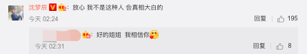 網易娛樂9月13日報道 9月13日凌晨,沈夢辰在社交平臺回復粉絲,她的原話是這樣:“放心,我不是這種人,會真相大白的”,此言一出,疑似在回應被人指耍大牌一事。
