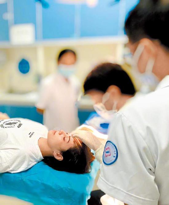 消息表示,受傷后的阿嬌一度還堅持要繼續前往劇組拍晨戲。因為9月7日劇組拍攝時間是早上六點,也是最后一天的拍攝,雖然阿嬌不想耽誤戲組的時間,但因傷勢不輕需留醫院觀察,經理人霍汶希亦不允許阿嬌即時繼續開工。經紀公司向媒體透露阿嬌最新情況,表示:“現在都是每天用冰敷,吃止痛藥及消炎藥,還有6天拆線,一切情況良好,希望拆線之后疤痕不大。”
