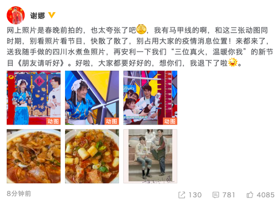 春節(jié)前,有八卦媒體在北京某影棚看到謝娜的身影。謝娜穿著一條橘色的吊帶長裙,單手插腰時(shí)小腹隆起,被疑是否懷孕。但隨后,謝娜發(fā)文否認(rèn)。她表示照片是春晚前拍的,太夸張了。