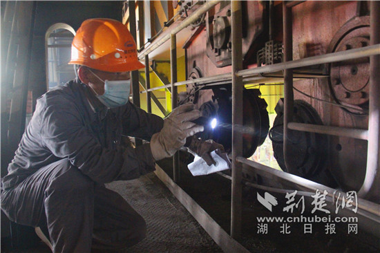 昏暗的光線下,一手持照明設備,一手拿著工具檢驗設備部件,檢驗員們先后來到起重機電氣室、司機室及小車平臺進行查看、檢驗。