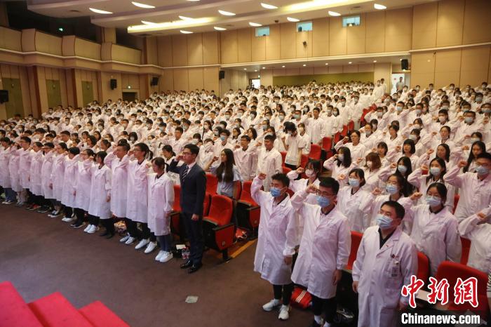 醫(yī)學(xué)新生著白袍宣誓。 童寬 攝