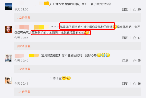 劉濤很少會在社交平臺發(fā)傷感文字,因此不少粉絲留言關(guān)心道:“早點休息吧!你不僅僅有勇氣,你是我們的小太陽,永遠正能量的姐姐。”“陀螺也會有停的時候,累了就好好休息”。