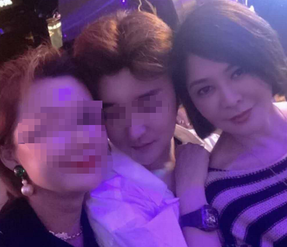 圖片中,關之琳妝容精致,打扮優雅,被兩個男生包圍而坐,其中一位雙手直接攬住了關之琳的肩膀,狀態十分親密,而關之琳歪頭淺笑,看上去心情不錯。