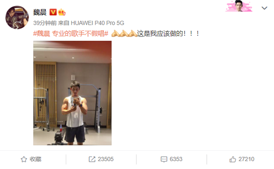 網易娛樂9月19日報道 9月19日,魏晨發文回應之前在商演舞臺中斷原唱伴奏的視頻,并配文:“這是我應該做的!!! ”并給粉絲附上一張帶著胡茬的健身圖。